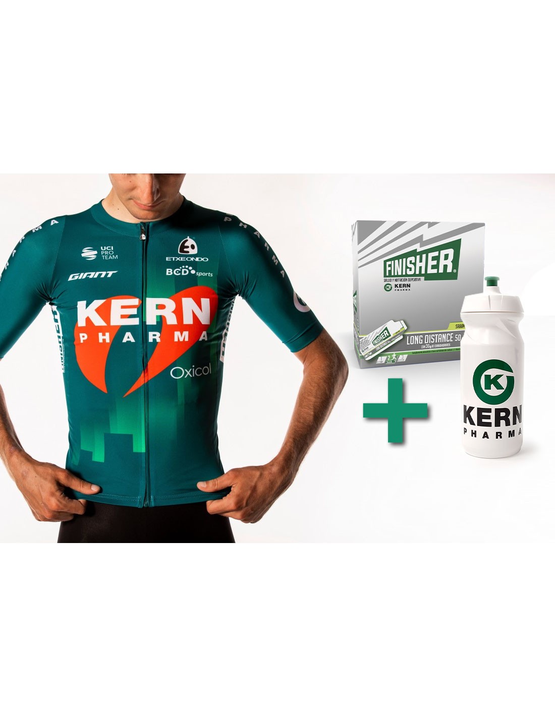 Disfruta de tus salidas en bici y siéntete un profesional con los bidones oficiales del Equipo Kern Pharma. Éste es el mismo bidón utilizado por nuestros ciclistas en las carreras más prestigiosas de nuestro calendario; el que utilizan para una perfecta hidratación, casi siempre con UCAN de Finisher aportando un extra de energía.
